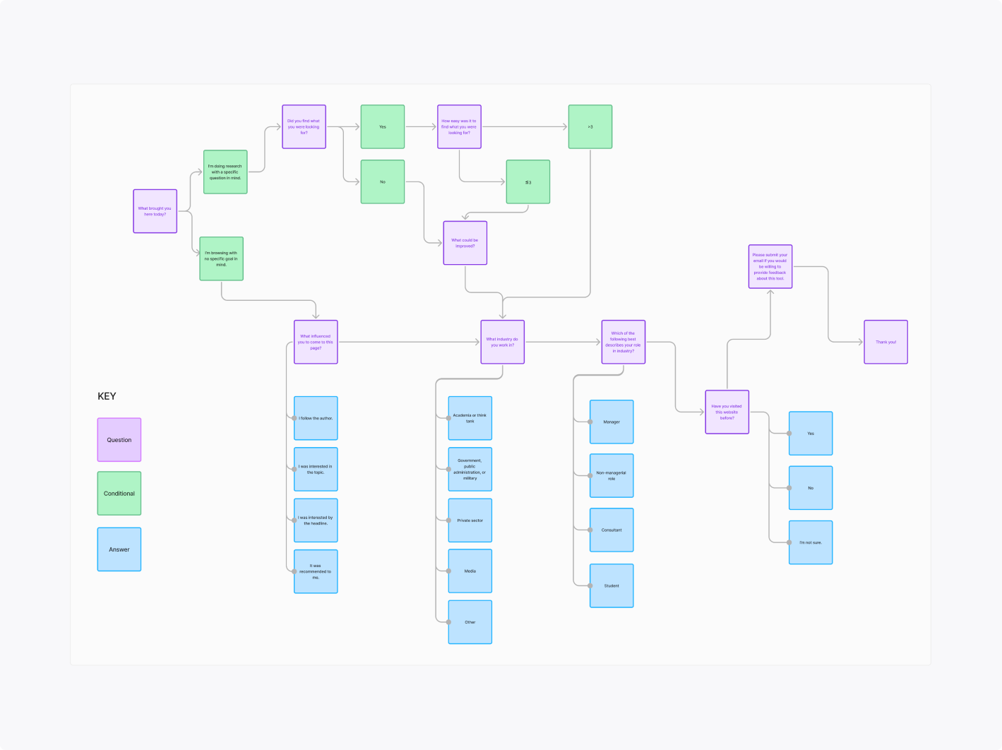 Survey question flow chart posted for 2 weeks