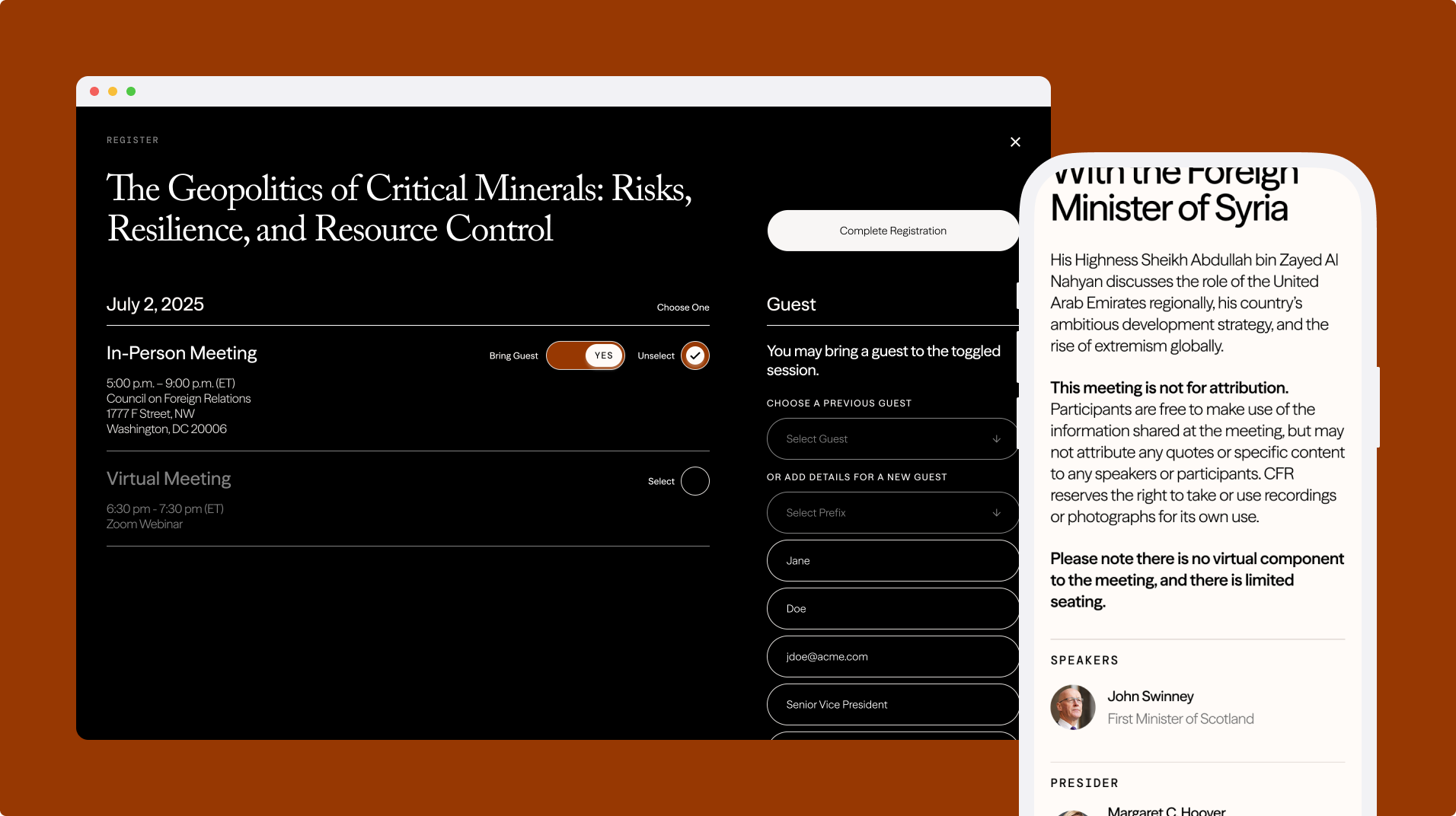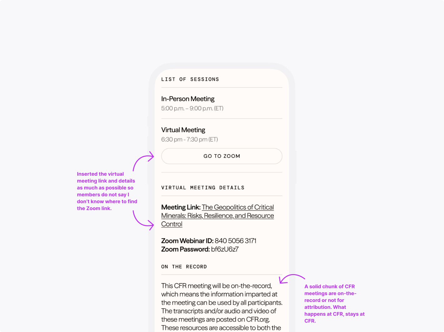 CFR utilizes an online portal for members to interact with global influencers, noted thinkers, and experienced practitioners. This online portal manages the member-only programming where individuals can register to various events and come together to engage in nonpartisan conversation. In this project, we revamped the user experience and redesigned the UI with the newly implemented design language.